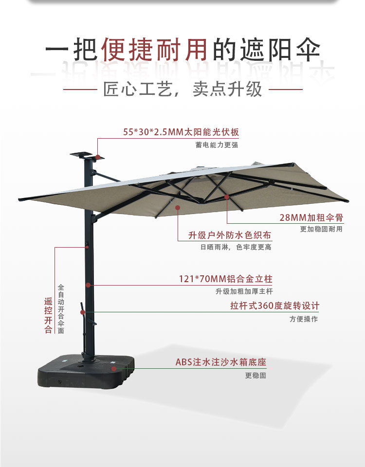 户外遮阳伞--现代七号遥控电动罗马伞
